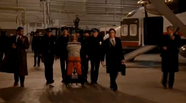infirmary. For some reason, this preposterous lawsuit is being heard by a judge (give me a break) and a handcuffed Dr. Gideon gets out of his cell again to be transported to court.